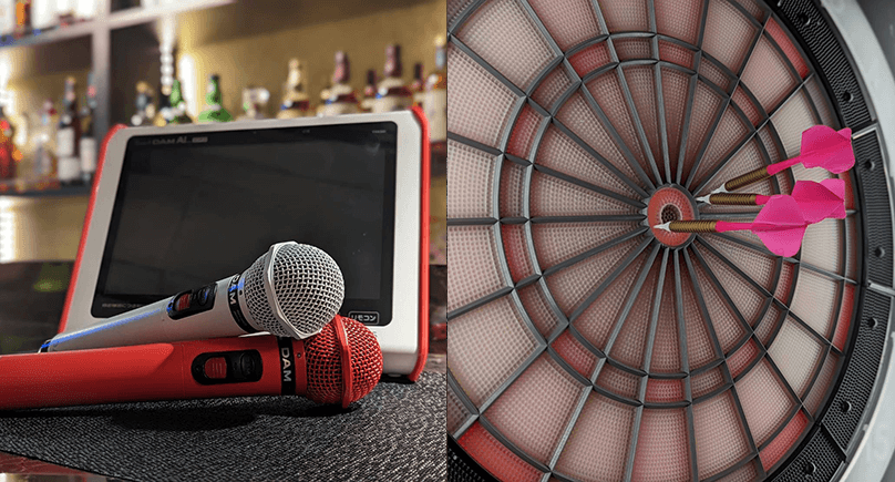 気軽な1人飲みをはじめ、デートやご友人との飲み会にピッタリの店内では、カラオケやダーツなどのゲームもお楽しみいただけます。